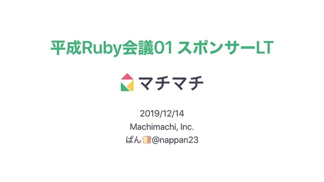 平成Ruby会議01 スポンサーLT 2019/12/14 Machimachi, Inc. ぱん @nappan23