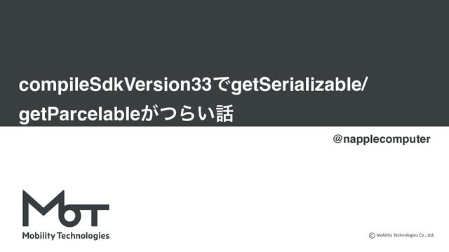 Mobility Technologies Co., Ltd. compileSdkVersion33ͰgetSerializable/ getParcelable͕ͭΒ͍ @napplecomputer