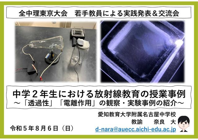 中学2年生における放射線教育の授業事例 ~「透過性」「電離作用」の観察・実験事例の紹介~ 愛知教育大学附属名古屋中学校 教諭 奈良 大