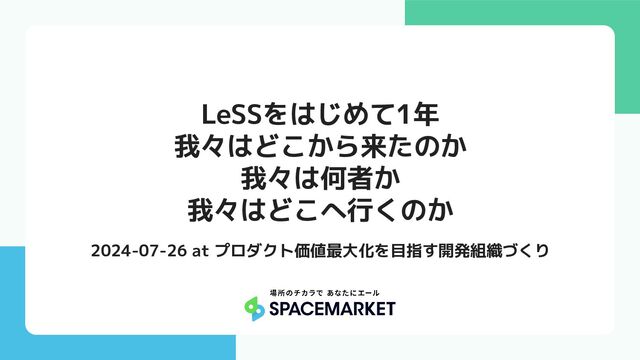 締めの言葉などが入ります。 本文などが入ります。 LeSSをはじめて1年 我々はどこから来たのか 我々は何者か 我々はどこへ行くのか 2024-07-26 at プロダクト価値最大化を目指す開発組織づくり