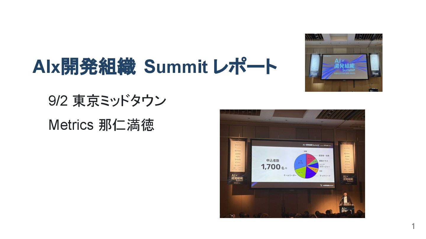 AIx開発組織 Summit レポート Metrics 那仁満徳 1 9/2 東京ミッドタウン