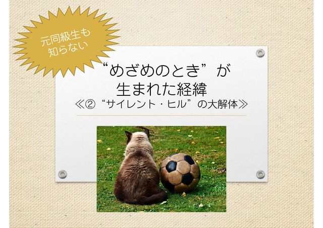 スライド②では、ちこがキャッチした暗号を用いて、周囲に存在していた闇を徹底的に追究していきます。メッセージのキーワードとサッカー関連事項を主なテーマに、震源地の静岡県内各地を次々と爆破!もちろん衝撃度が最も大きいのは静岡県民だと思われますが、県外の方にもよく知られている場所や重要な事項がたくさん盛り込まれています。ちこのサタン大国、“サイレント・ヒル”の豪快な取り壊しをあなたも是非一緒に見届けてください。