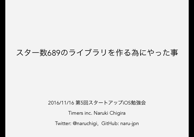 ελʔ689ͷϥΠϒϥϦΛ࡞Δҝʹͬͨࣄ Twitter: @naruchigi, GitHub: naru-jpn 2016/11/16 ୈ5ճελʔτΞοϓiOSษڧձ Timers inc. Naruki