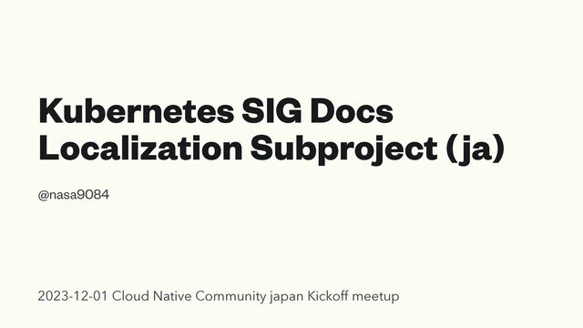 Kubernetes SIG Docs Localization Subproject (ja)