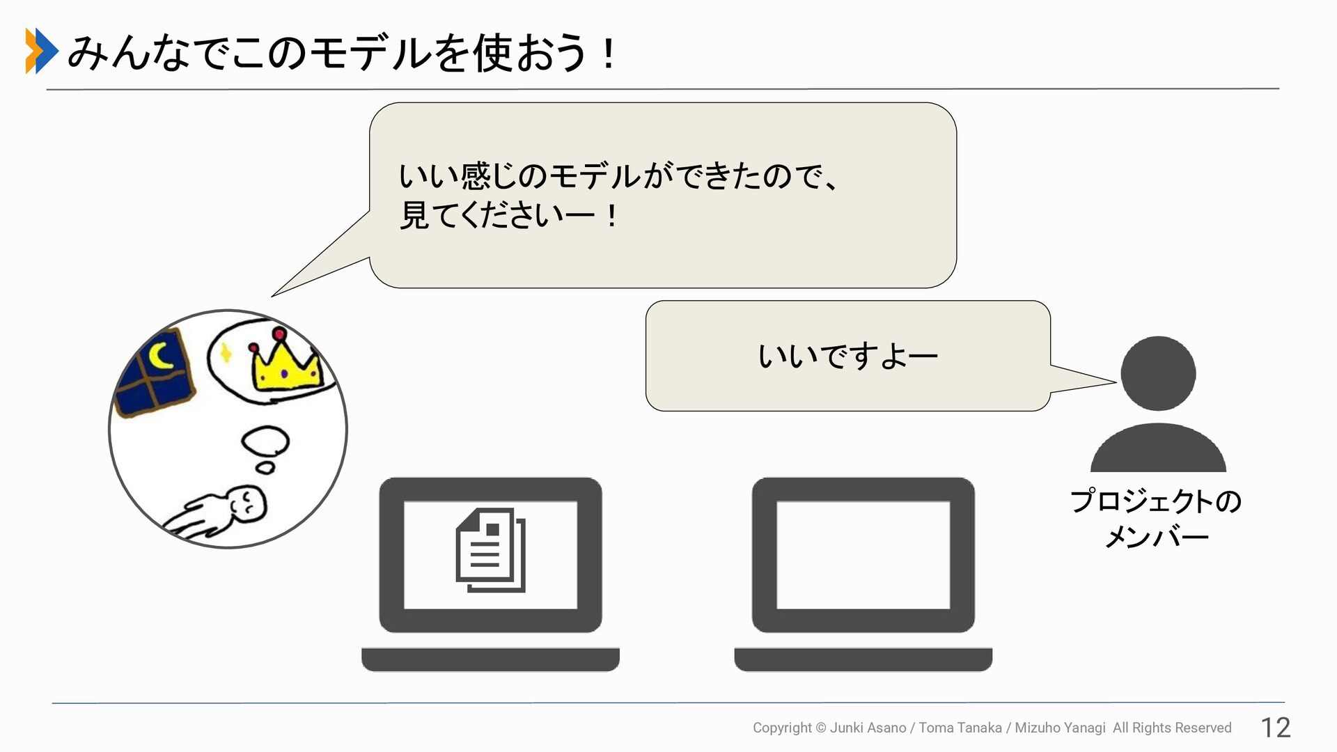 All Rights Reserved 12 みんなでこのモデルを使おう! いい感じのモデルができたので、 見てくださいー! いいですよー プロジェクトの メンバー