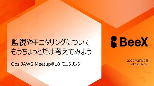 Takashi Nasu 監視やモニタリングについて もうちょっとだけ考えてみよう Ops JAWS Meetup#18 モニタリング