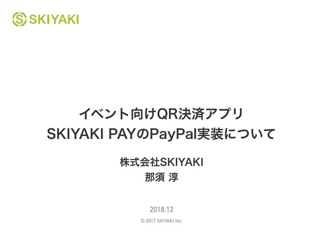 © 2017 SKIYAKI Inc. Πϕϯτ͚23ܾࡁΞϓϦ 4,*:",*1":ͷ1BZ1BM࣮ʹ͍ͭͯ גࣜձࣾ4,*:",* ಹਢ३ 2018.12