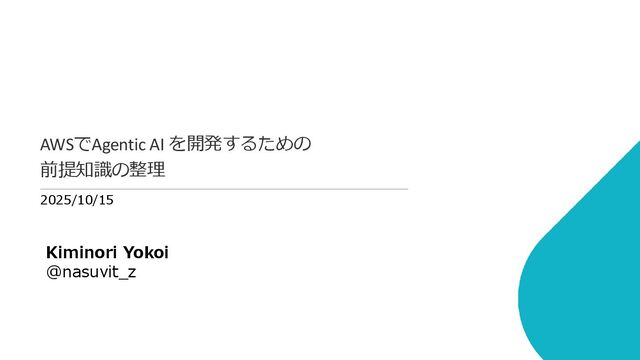 AI という考え方とその実装が登場した • ただ出力するだけであった生成AIの能力に、記憶・推論・計画・行動の要素 を加え、AIが自ら目的を理解して行動する仕組みを実現する • このサービス実装が Amazon Bedrock AgentCore • AIが企業全体のプロセスを横断的に担うことが期待されている Agentic AI とは
