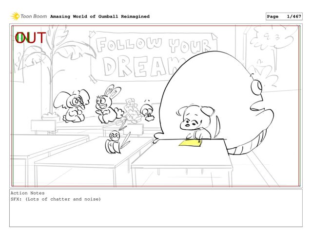 Taking a script from the Amazing World of Gumball, and re-imaging the staging and characters from an original perspective.