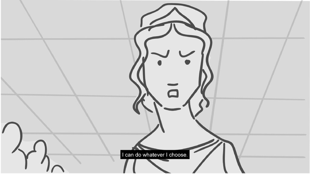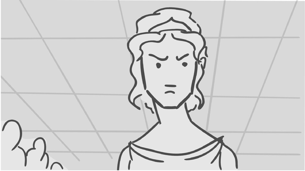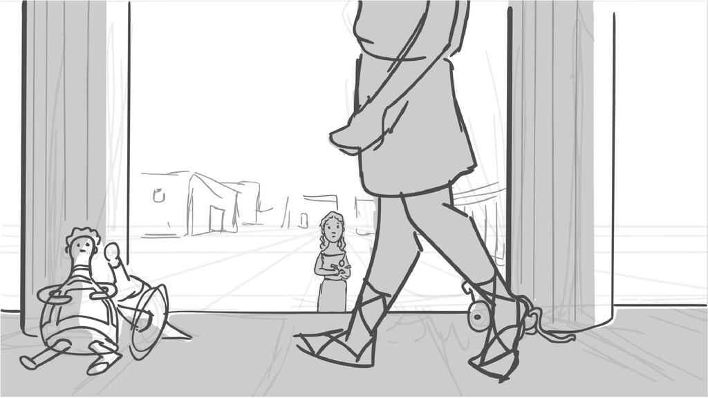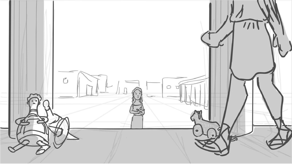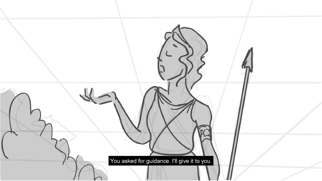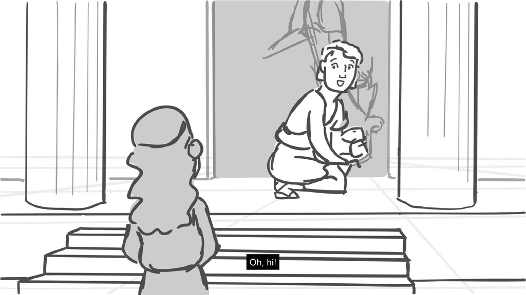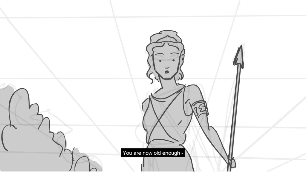 Young Phoebe has reached the age when girls of ancient Greece are expected to renounce childish things and marry. In this scene she receives guidance from an unexpected source.