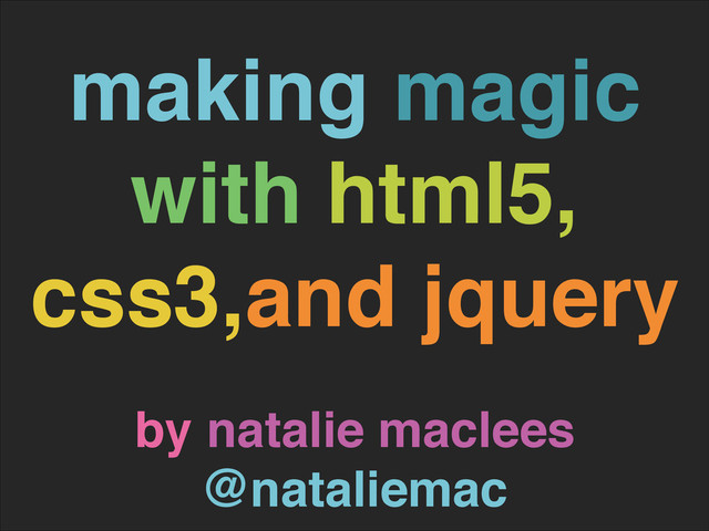 making magic with html5, css3,and jquery by natalie maclees! @nataliemac