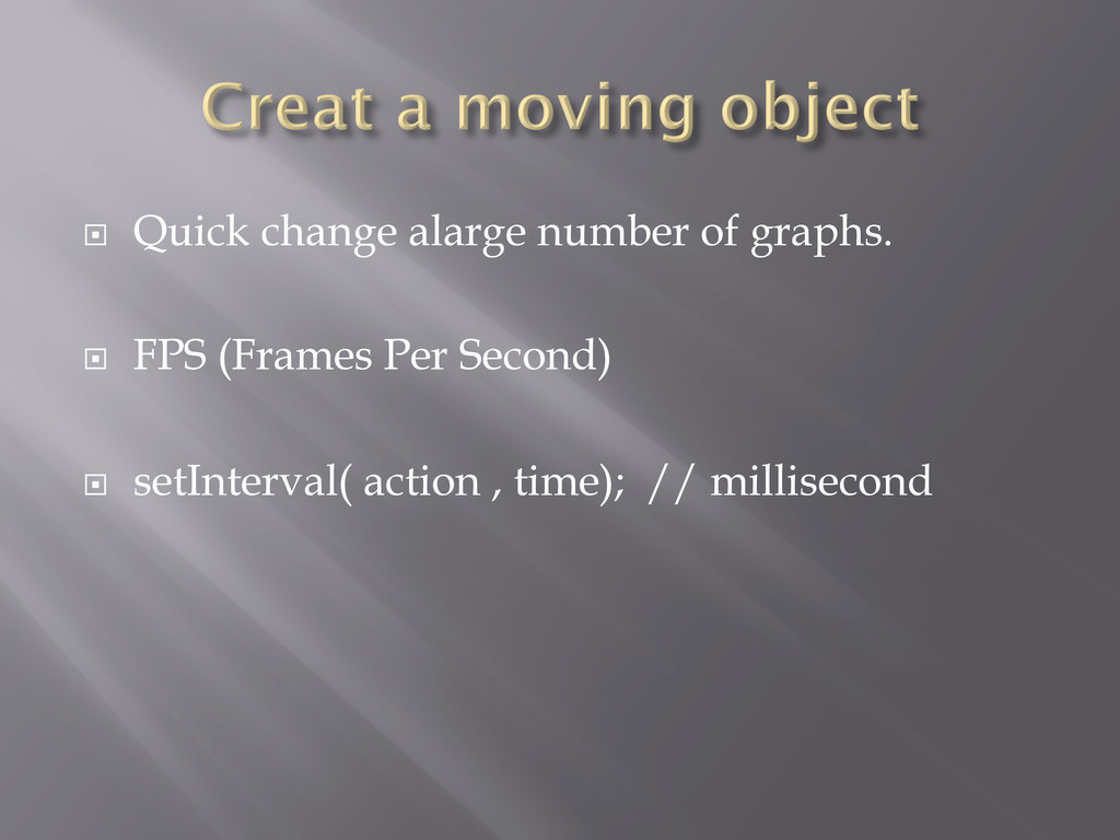 Per Second) ¨ setInterval( action , time); // millisecond