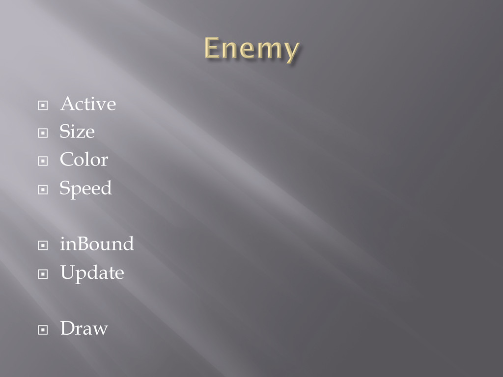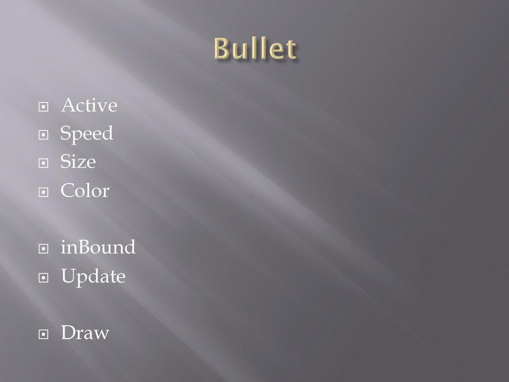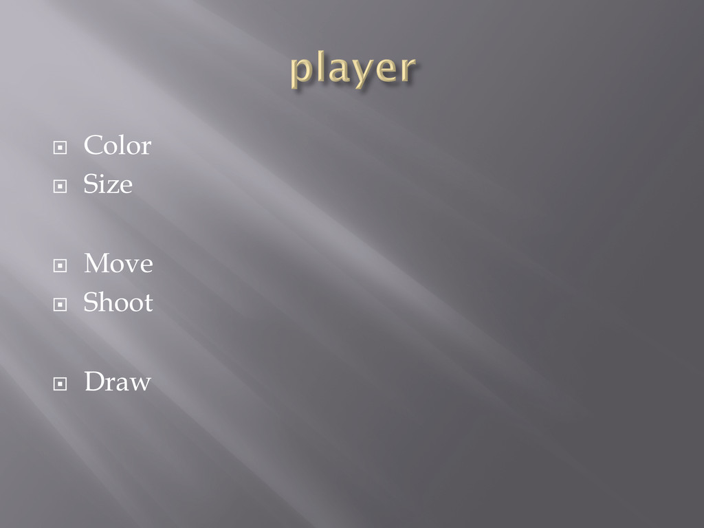 ¨ Color ¨ Size ¨ Move ¨ Shoot ¨ Draw