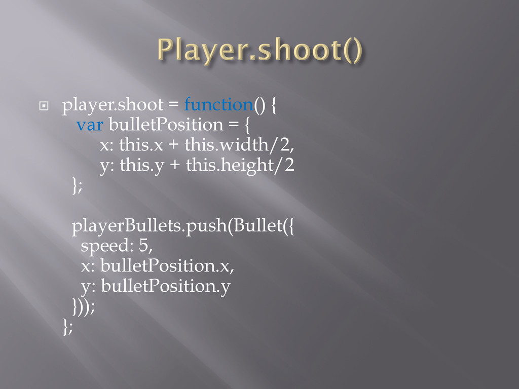 ¨ player.shoot = function() { var bulletPosition = { x: