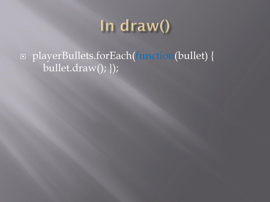 ¨ playerBullets.forEach(function(bullet) { bullet.draw(); });