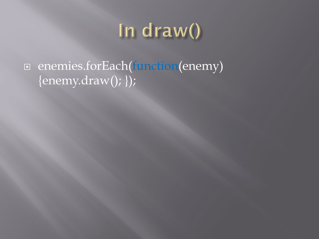 ¨ enemies.forEach(function(enemy) {enemy.draw(); });