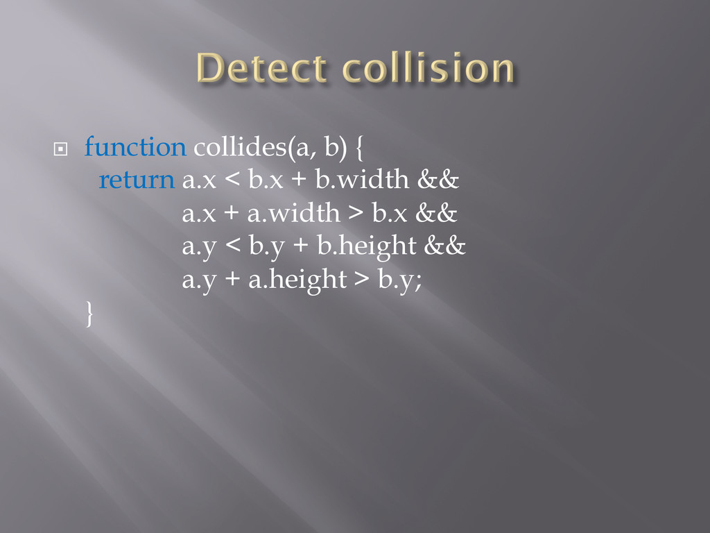¨ function collides(a, b) { return a.x < b.x +
