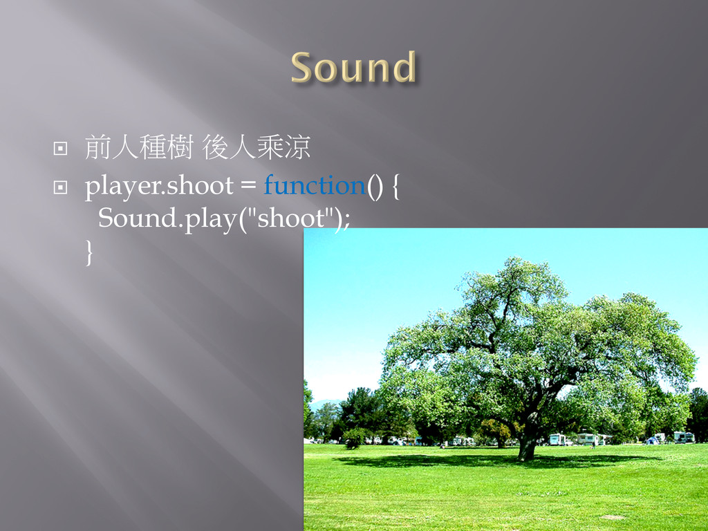 ¨ 前人種樹 後人乘涼 ¨ player.shoot = function() { Sound.play("shoot"); }