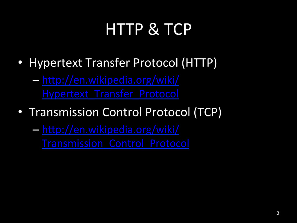 HTTP & TCP • Hypertext Transfer Protocol (HTTP) – h;p://en.wikipedia.org/wiki/