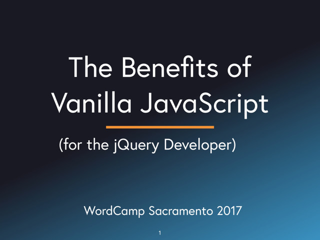 The Benefits of Vanilla JavaScript WordCamp Sacramento 2017 1 (for