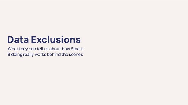 from 15 October to 18 October, and the conversion delay is five days, apply the exclusion as quickly as possible, including any days with impacted clicks. In this case, you would exclude 10 October to 18 October ➔ Apply data exclusions as quickly as possible at the time you’ve identified a conversion data issue ➔ Data exclusions are typically taken into eect by Smart Bidding within a week. After applying a data exclusion, adjust CPA/ROAS targets to achieve desired performance, while ensuring budgets are set to acceptable levels ➔ Exclusion dates selected will apply to clicks, so make sure that you consider your conversion delay and exclude any days of clicks that may have been impacted. It’s a best practice to exclude 90% of clicks associated with impacted conversion data