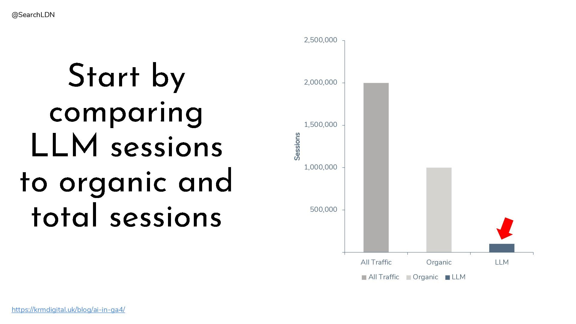 sessions https://krmdigital.uk/blog/ai-in-ga4/ 500,000 1,000,000 1,500,000 2,000,000 2,500,000 All Traffic Organic LLM Sessions All Traffic Organic LLM