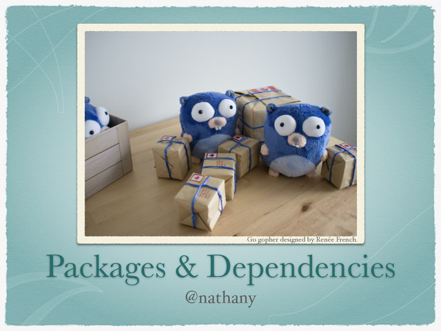 import “my/weather" // $GOPATH/src/my/weather! Qualify with the package name.