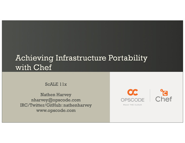 the costs associated with the features of your platform(s) of choice. • Chef enables Infrastructure Portability • "Data Gravity" is the primary concern