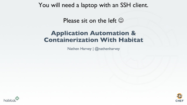 This hands-on workshop is for anyone involved in building, deploying, or managing applications. The workshop will give you experience running and building applications with Habitat and describe the application-first approach that Habitat provides.