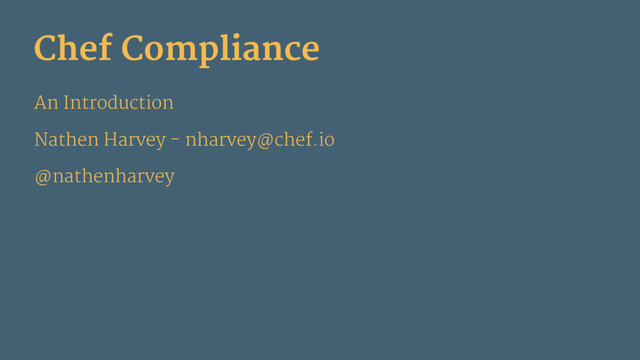 able to: » Describe the capabilities of Chef Compliance » Configure Chef Compliance to scan nodes in your environment » Write custom Compliance policies using InSpec » Upload custom Compliance policies to your Chef Compliance server » Use InSpec-based compliance checks in your cookbook