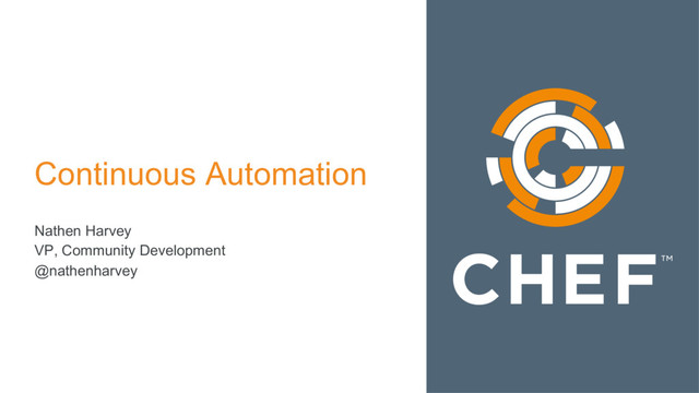 Whether you have five or five thousand servers, Chef lets you manage them all by turning infrastructure into code. Infrastructure described as code is flexible, versionable, human-readable, and testable. Whether your infrastructure is in the cloud, on-premise or in a hybrid environment, you can easily and quickly adapt to your business's changing needs with Chef. Join us for a presentation about and demonstration of Chef's capabilities to help your organization mover faster and more efficiently, while also reducing risk.