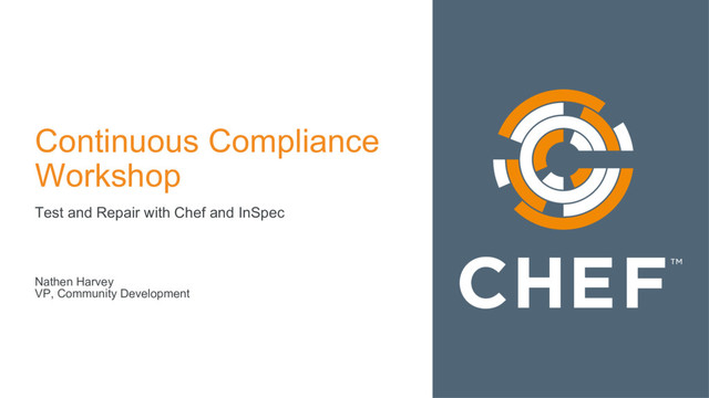 Success with DevOps can be measured with a number of different metrics. How frequently are systems audited for compliance to various policies? How long does it take to remediate a failing control or vulnerability? This workshop provide an introduction to practice of continuous compliance and remediation. The workshop uses InSpec and Chef for compliance and remediation, respectively. InSpec is an open-source testing framework for infrastructure with a human-readable language for specifying compliance, security and other policy requirements. Chef is an open-source framework for infrastructure automation. Easily integrate automated tests that check for adherence to policy into any stage of your deployment pipeline.