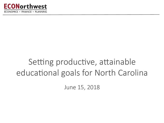 demand, higher skilled labor • North Carolina’s postsecondary a1ainment gap (across various defini-ons) is 11-15 percentage points • North Carolina’s postsecondary a1ainment (associate+) increased by 7 percentage points over the past decade • Sta-ng the obvious: postsecondary enrollment at age 19 is a predictor of postsecondary a1ainment at age 26 • P12 goals should consider measures of hard and soR skills • Achievement gaps measured at age 5 have proven difficult to narrow during K12, confirming the need for age 0-4 programming and measures