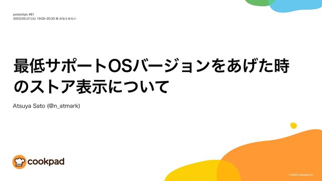 $PPLQBE*OD ©︎ QPUBUPUJQT Ր d!ΈͳͱΈΒ͍ ࠷αϙʔτ04όʔδϣϯΛ͋͛ͨ࣌ ͷετΞදࣔʹ͍ͭͯ "UTVZB4BUP !O@BUNBSL