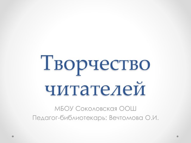 Творчество читателей МБОУ Соколовская ООШ Педагог-библиотекарь: Вечтомова О.И.