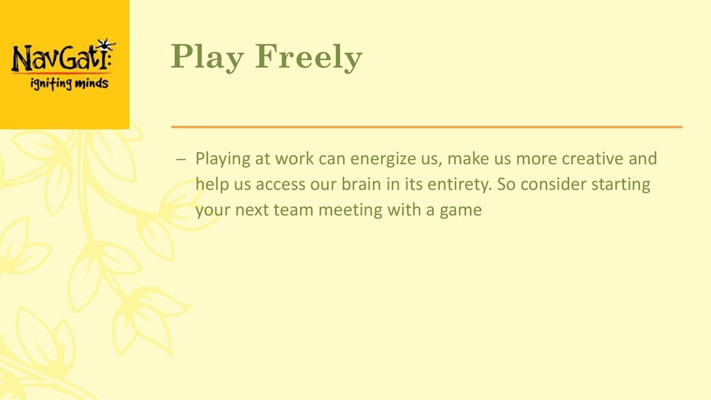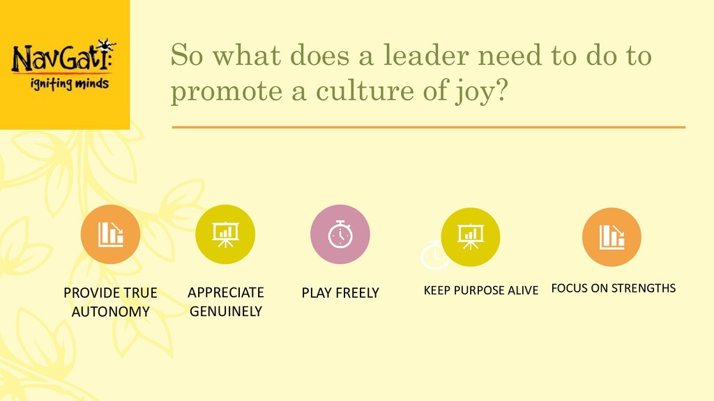 joy for yourself and for those you lead into success… and happiness. – Navgati runs a one-day workshop on Leading with Joy, where we spend the day with managers exploring in depth some of these concepts, sharing tools to strengthen their ability to lead with joy and setting them up for success in their quest. www.navgati.in