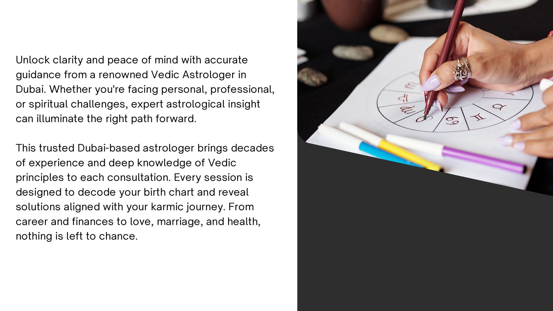 a renowned Vedic Astrologer in Dubai. Whether you're facing personal, professional, or spiritual challenges, expert astrological insight can illuminate the right path forward. This trusted Dubai-based astrologer brings decades of experience and deep knowledge of Vedic principles to each consultation. Every session is designed to decode your birth chart and reveal solutions aligned with your karmic journey. From career and finances to love, marriage, and health, nothing is left to chance.