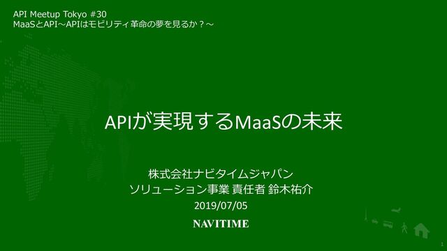 2019/07/05に開催された『API Meetup Tokyo #30 MaaSとAPI 〜APIはモビリティ革命の夢を見るか?〜』にて発表した資料です。