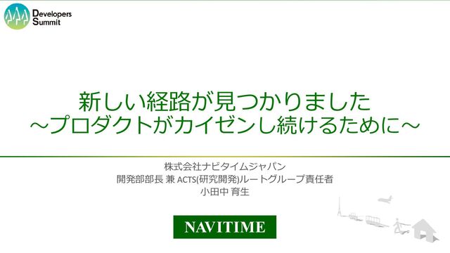 ©NAVITIME JAPAN 新しい経路が見つかりました ~プロダクトがカイゼンし続けるために~ 株式会社ナビタイムジャパン 開発部部長 兼 ACTS(研究開発)ルートグループ責任者 小田中 育生