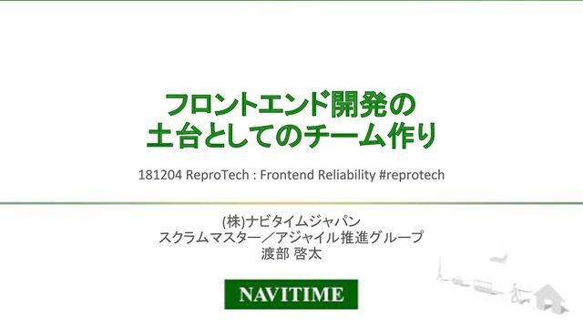 フロントエンド開発の 土台としてのチーム作り 株 ナビタイムジャパン スクラムマスター/アジャイル推進グループ 渡部 啓太