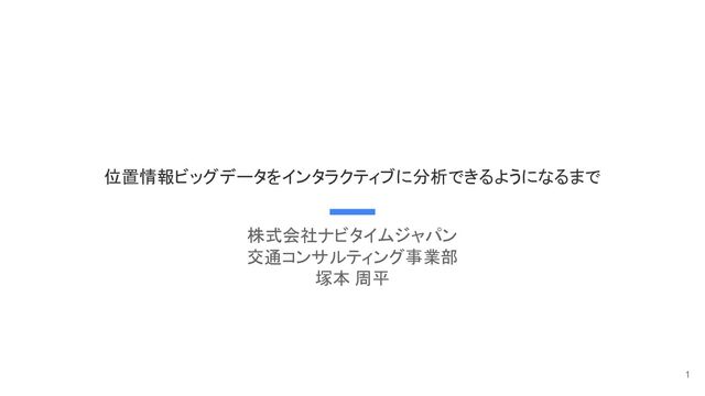 位置情報ビッグデータをインタラクティブに分析できるようになるまで 株式会社ナビタイムジャパン 交通コンサルティング事業部 塚本 周平 1