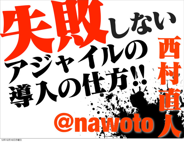 僕がやっている事 ؾ͍ͮͯͳ͍ࣄݟ ಀ͍ͯ͠ΔࣦഊΛ ͑ɺߟ͑ͯΒ͏ࣄ Λଅ͢ 1212݄10݄༵