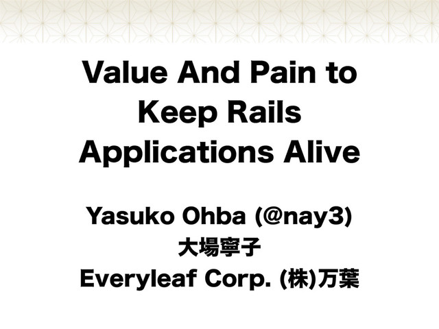 How to upgrade Rails from 2 to 5 and what we are doing to keep longtime Rails applications alive, which was a talk in RubyConf Taiwan 2016.