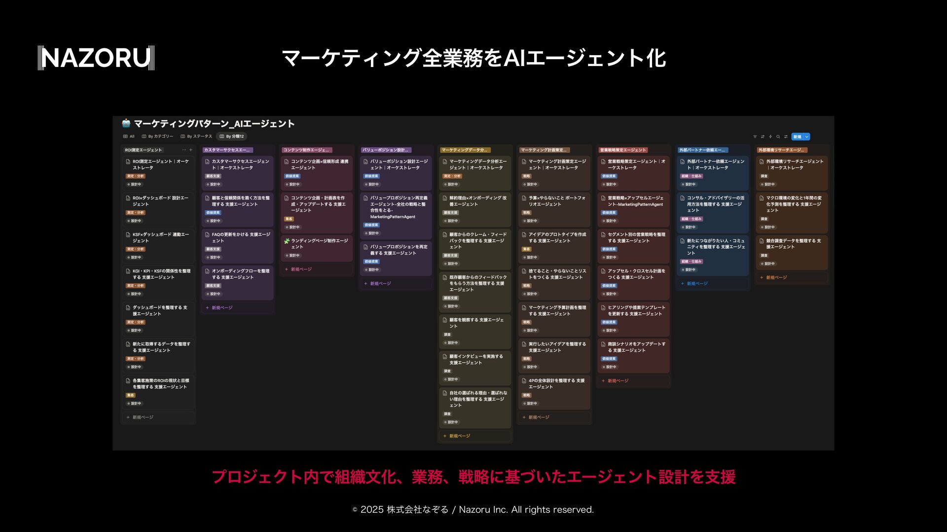 גࣜձࣾͳͧΔ/B[PSV*OD"MMSJHIUTSFTFSWFE ϚʔέςΟϯάશۀΛ"*ΤʔδΣϯτԽ ϓϩδΣΫτͰ৫จԽɺۀɺઓུʹج͍ͮͨΤʔδΣϯτઃܭΛࢧԉ