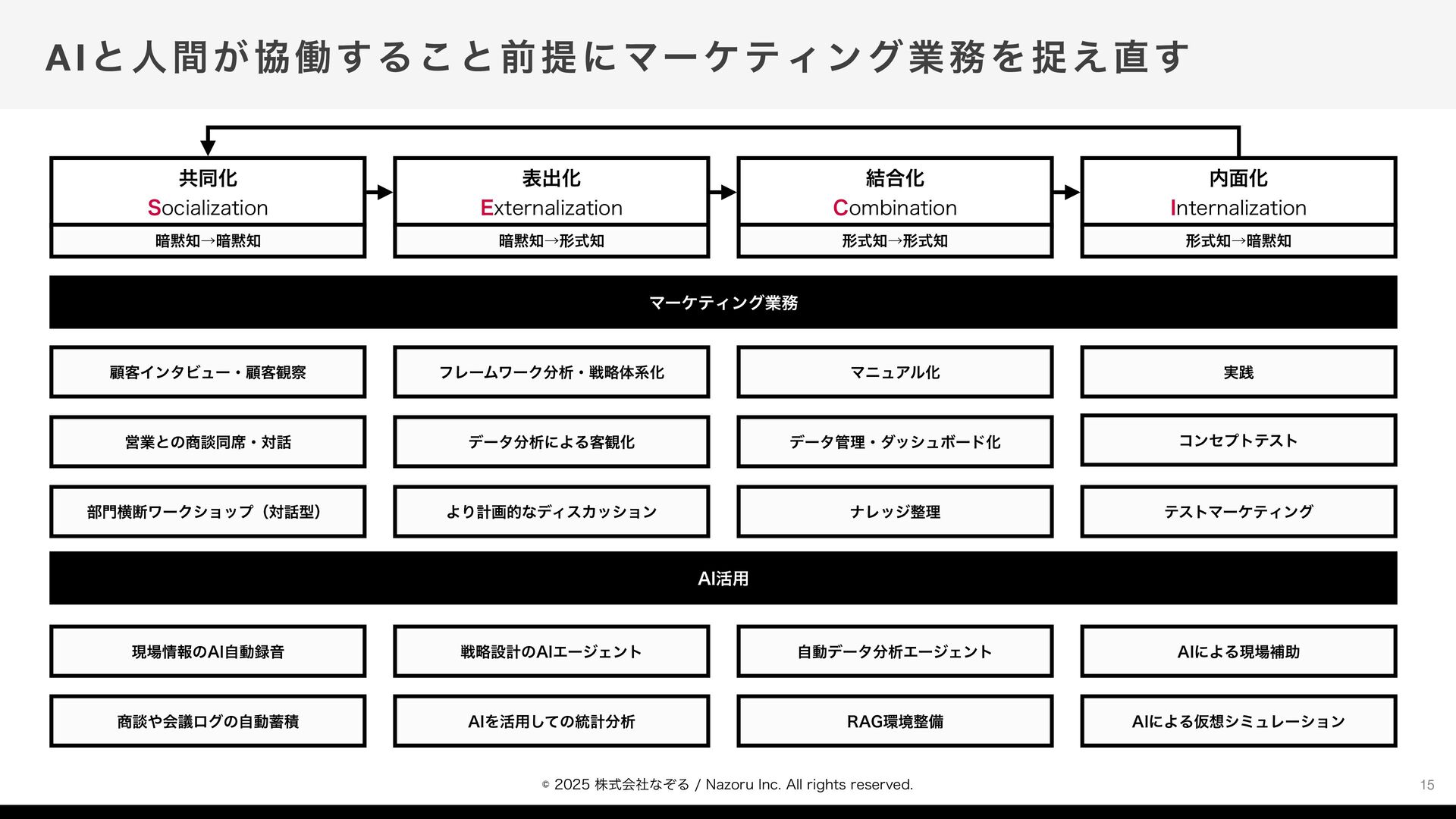גࣜձࣾͳͧΔ/B[PSV*OD"MMSJHIUTSFTFSWFE AIͱਓ͕ؒڠಇ͢Δ͜ͱલఏʹϚʔέςΟϯάۀΛଊ͑͢ 15 ڞಉԽ 4PDJBMJ[BUJPO දग़Խ &YUFSOBMJ[BUJPO ݁߹Խ $PNCJOBUJPO ໘Խ