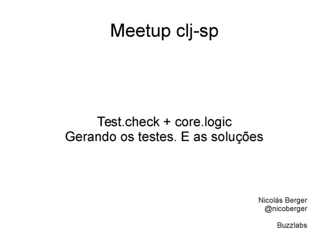 Meetup clj-sp Test.check + core.logic Gerando os testes. E as