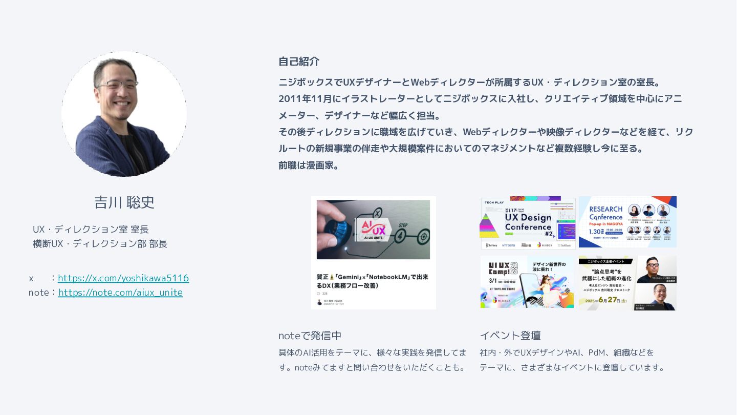 吉川 聡史|株式会社ニジボックス UX・ディレクション室 室長 横断UX・ディレクション部 部長