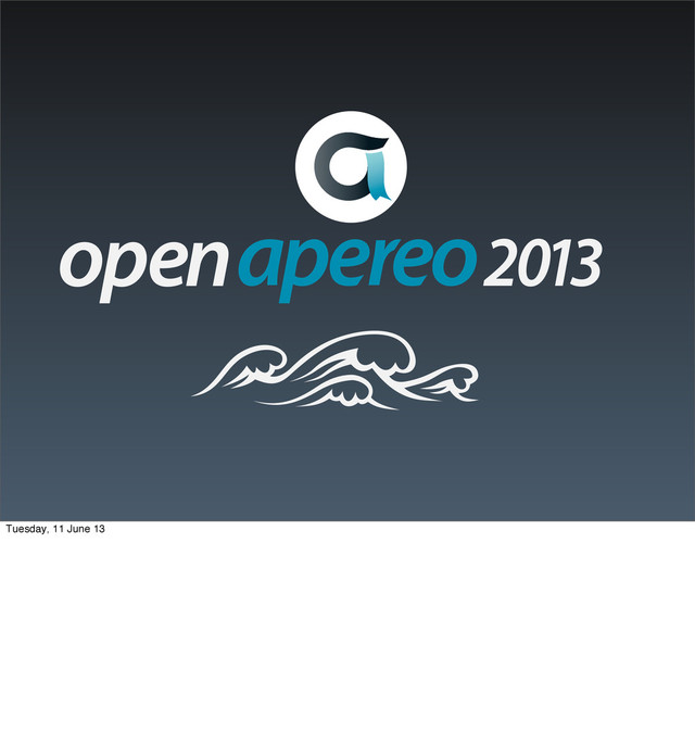 Director, Apereo Foundation June 2013 Tuesday, 11 June 13 What a great week. Great keynotes - thanks again to Marilyn and Theresa. Great sessions, and great social events. If you’ve served on the program committee, the planning committee or the social events committee, please stand. and be recognized Thanks also to our conference planners, Concentra. Great job, guys!