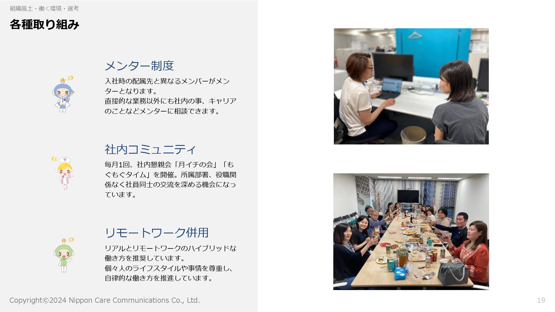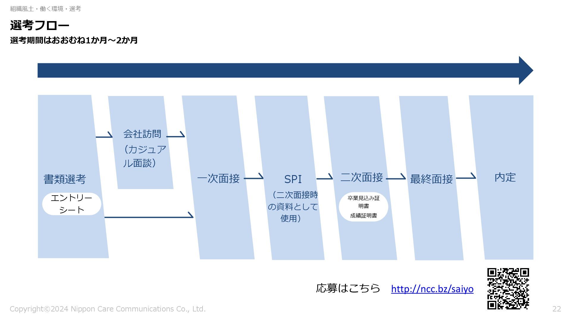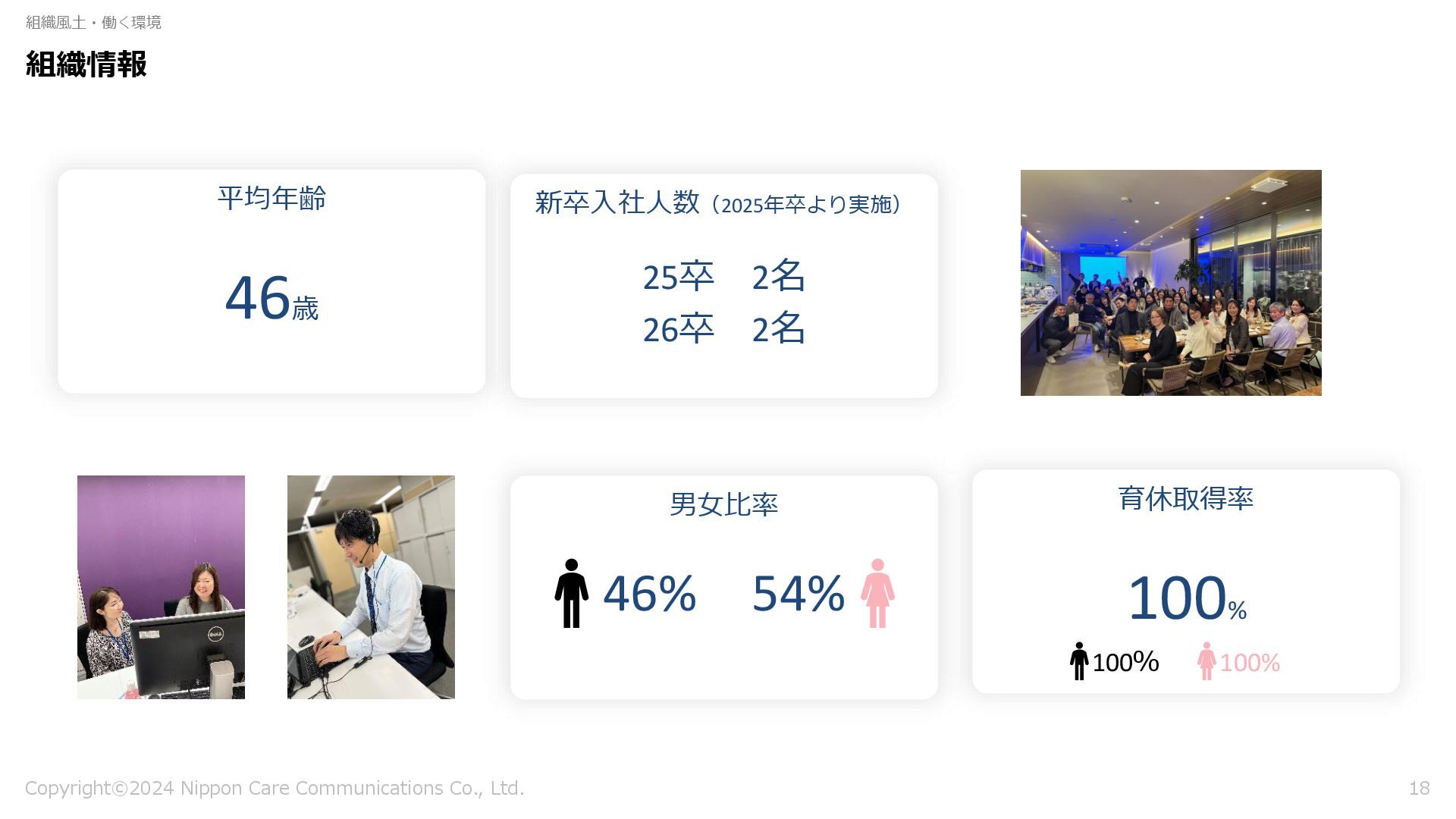 9:00~17:30 フレックスタイム制度有 給与・諸手当 基本給:220,000円 交通費全額支給 ・残業手当 ・在宅勤務手当(3,000円 研修期間終了後より) 昇給・賞与 待遇 ・昇給年1回(4月) ・賞与年2回(7月、12月)※年間で4カ月程度/業績・個人評価に連動して支給 各種社会保険完備 社員持株会制度 SOMPOグループ団体保険 昼食補助(3,500円/月) 勤務地 東京(中央区)+ テレワーク ※テレワークは研修終了後より利用可 休日休暇 年間休日120日以上 ・土曜日、日曜日、祝日 ・有給休暇 ・フリーバカンス休暇(4日間) ・年末年始休暇(12/29~1/3) ・アニバーサリー休暇 ・ファミリーサンクス休暇 ・慶弔休暇 ・傷病休暇制度 ・リフレッシュ休暇(勤続10年/20年/30年)