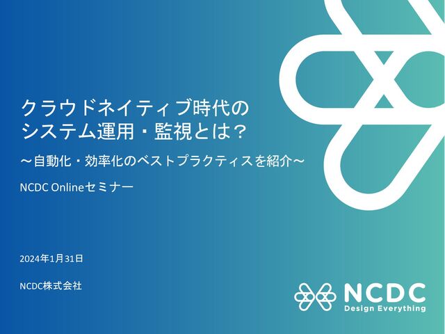 本セミナーでは、クラウドネイティブな環境の代表格であるサーバレスアーキテクチャに精通するコンサルタントが、先進的なシステム運用・監視の方法やベストプラクティスをご紹介します。